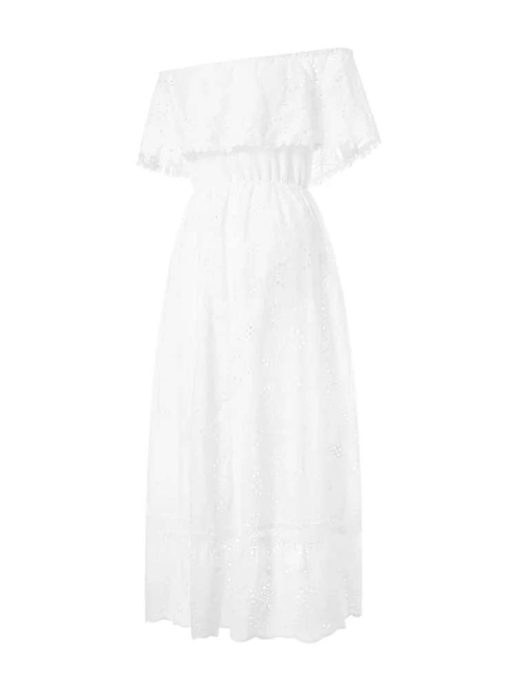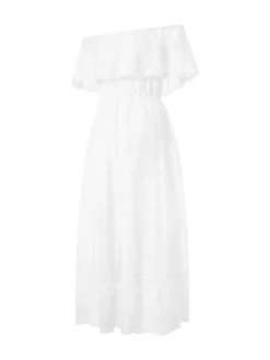 Womens Casual Dress, Off Shoulder Short Sleeve Middle Waist Lace Embroidered Solid Color Irregular Dresses
