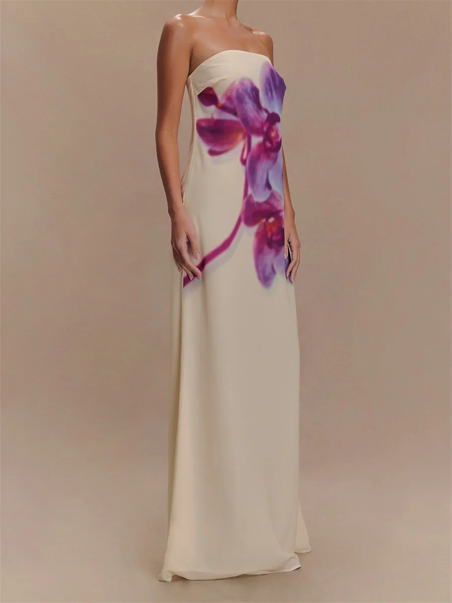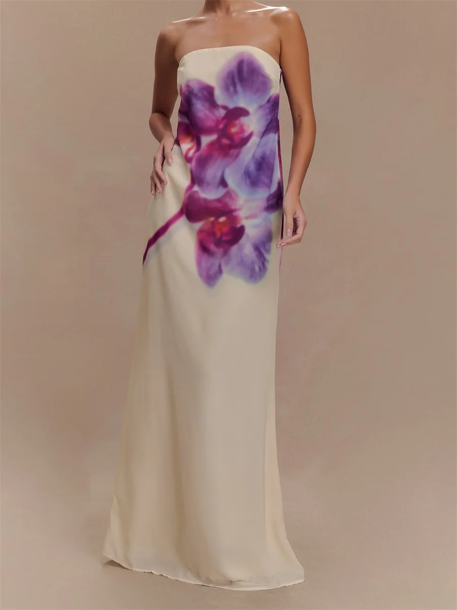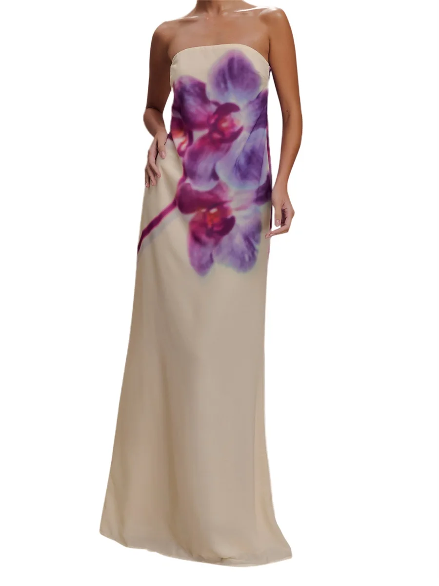 Women Long Dress Floral Print Strapless Tube Dress for Party Evening Elegant Summer Fashion Casual Dresses