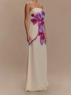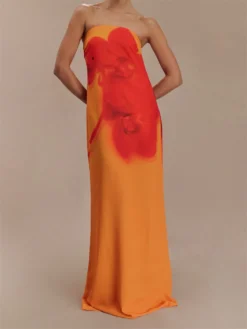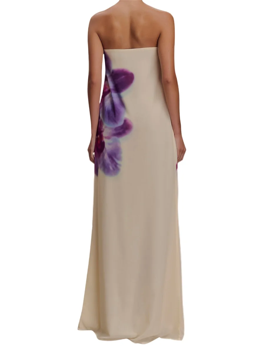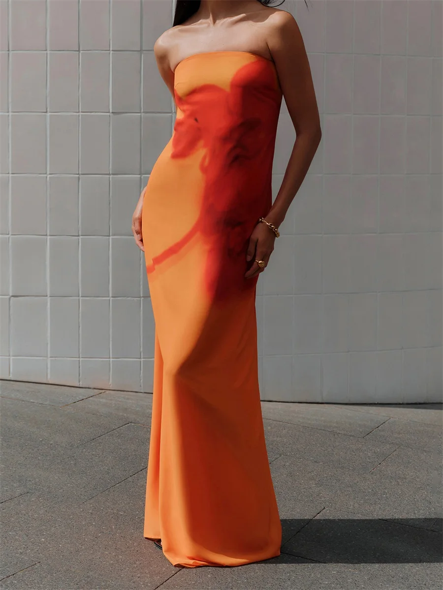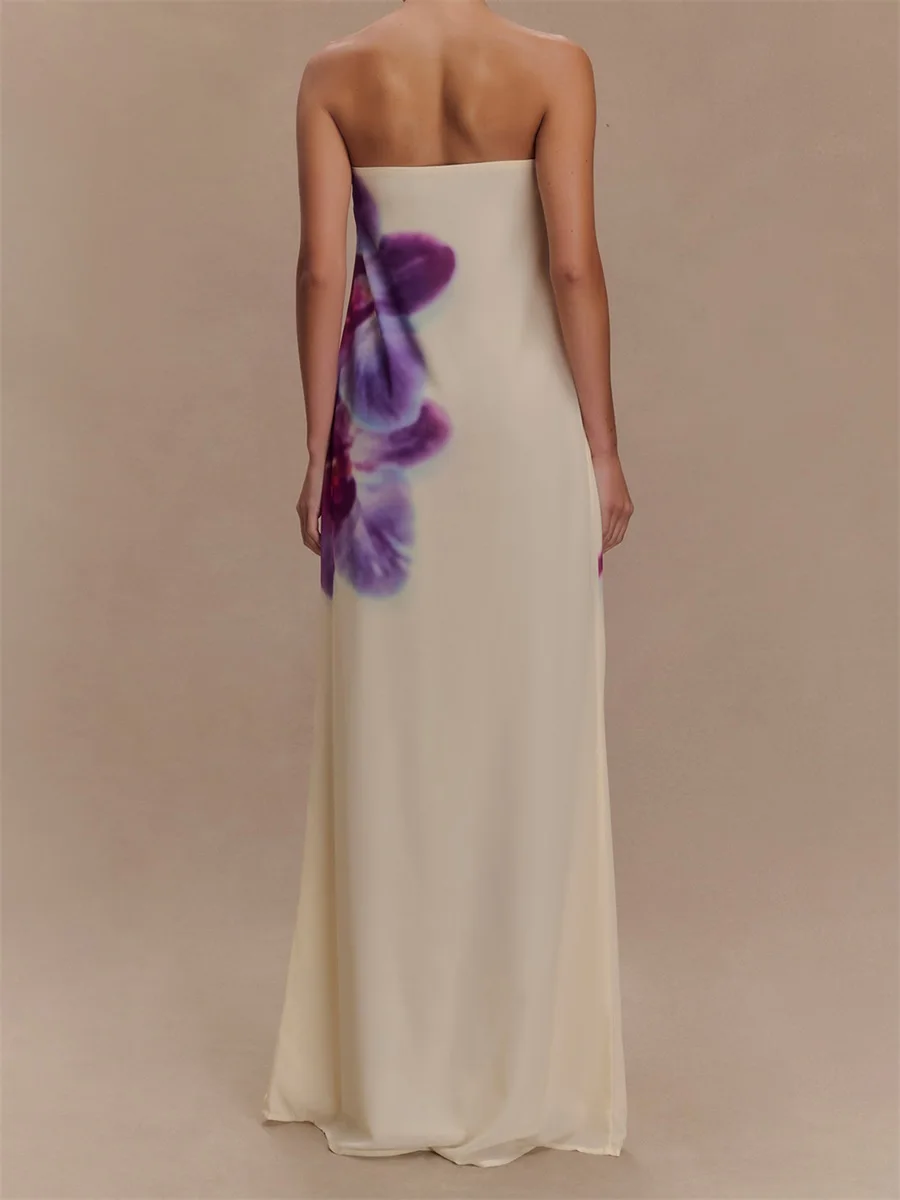 Women Long Dress Floral Print Strapless Tube Dress for Party Evening Elegant Summer Fashion Casual Dresses