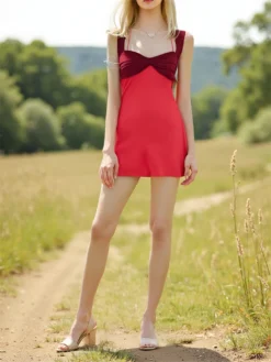 Contrasting colors, ruched bust, wide straps and sleeveless, bandage and backless; Casual dresses for women; Mini length design, easy to show your charming curves, perfect addition to your closet