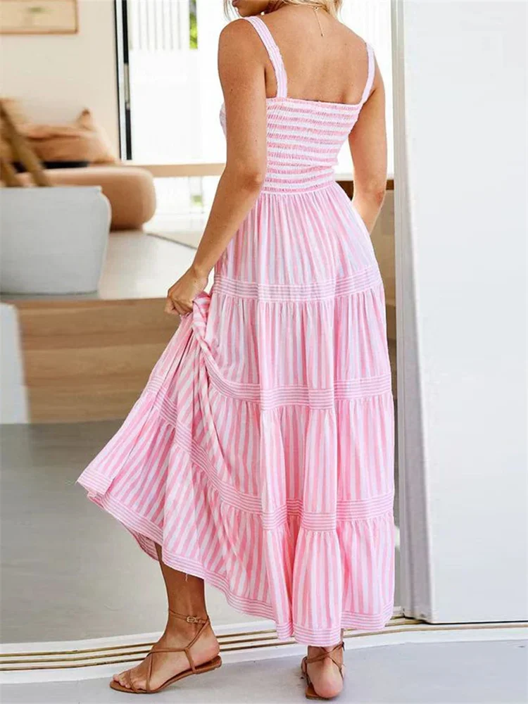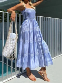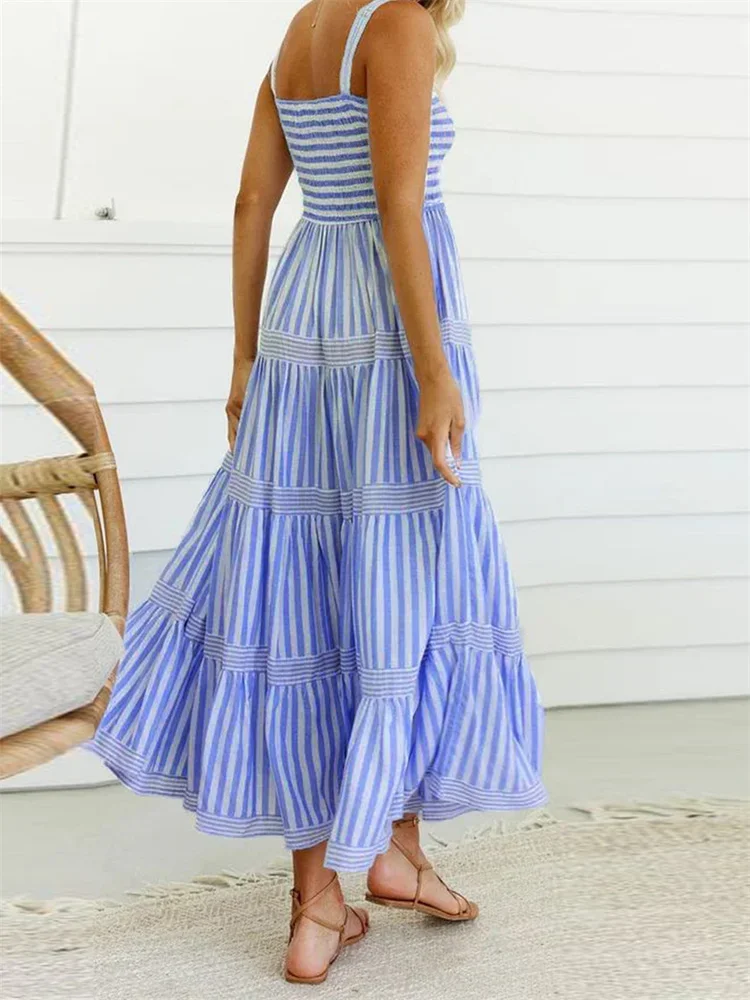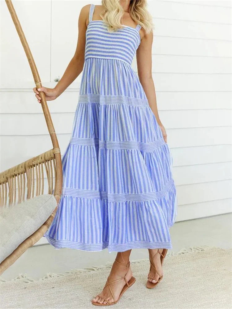 Women Summer Flowy Dress Sleeveless Striped Print Long A-line Dress for Party Vacation Cocktail Beach Streetwear