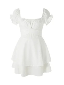 Women’s Mini A-Line Dress Solid Color Ruffled Sleeves Square Neck Layered Hem Dress for Party Club Elegant Dresses Summer