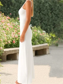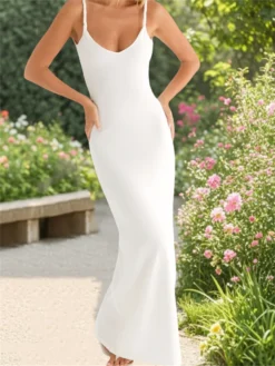 Women Sleeveless Long Dress Summer Solid Color Twisted Straps V-Neck Backless Party Dress for Vacation Beach Streetwear